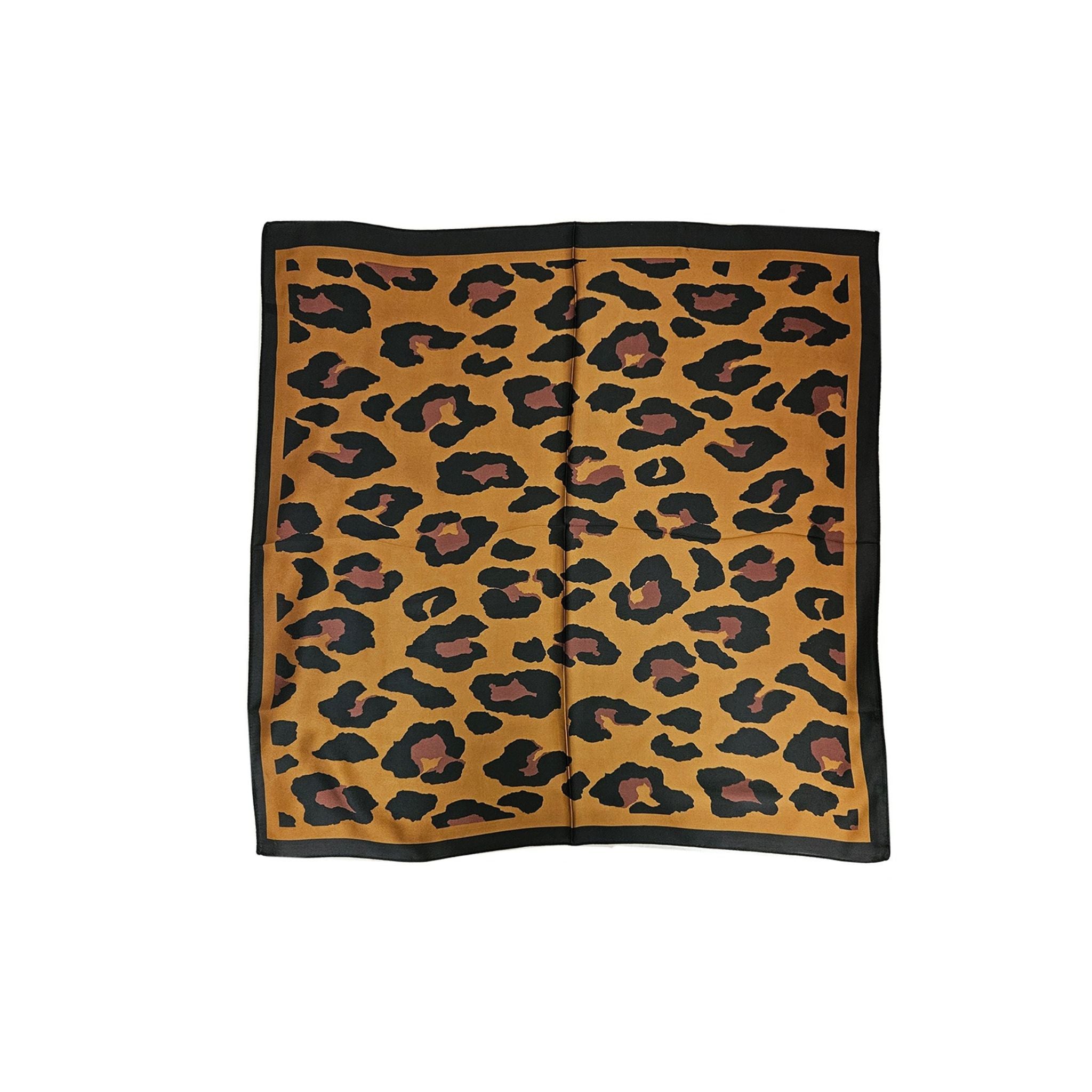 Indulge your wild side with our brown silky cheetah print scarf! The bold print and black trim will add a touch of fierceness to any outfit.