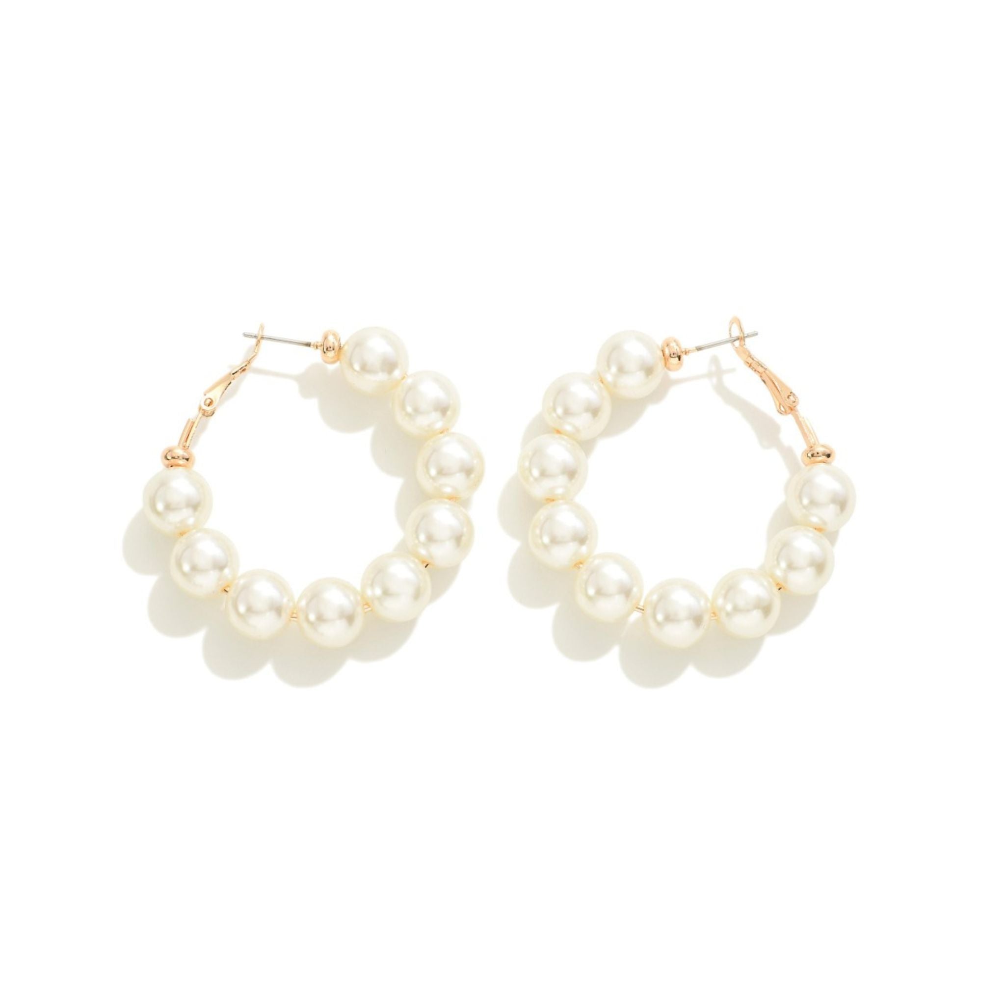 Simple Pearl Beaded Hoop Earring- Approximately 1.75" L