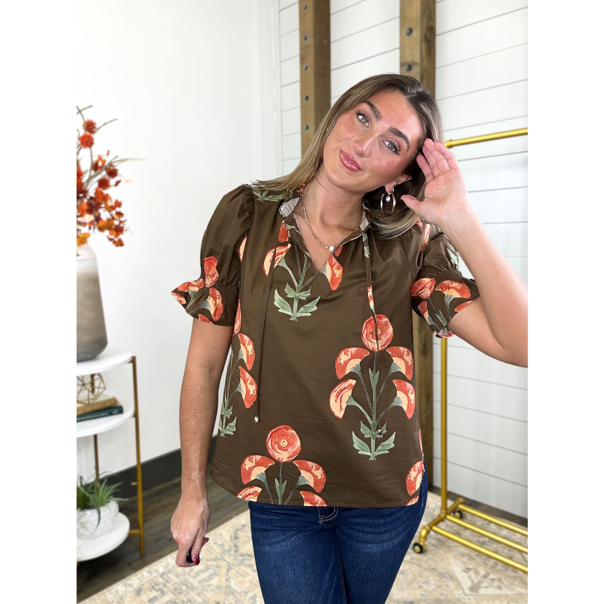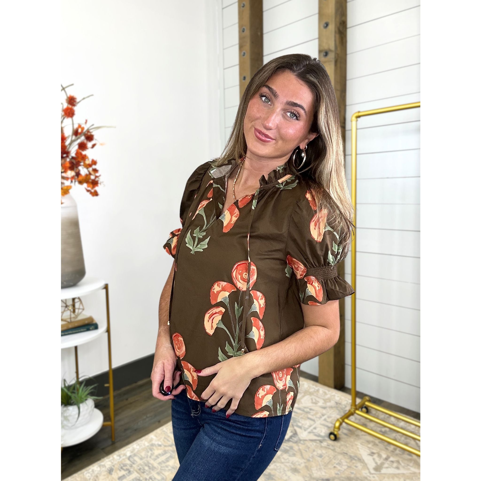 The Autumn’s Blooming Breeze Top is here in a gorgeous new fall print, bringing all the breezy charm you love in this favorite body style. With its flattering fit and sweet feminine details, it’s the perfect mix of playful and pretty—just the thing to freshen up your autumn wardrobe.