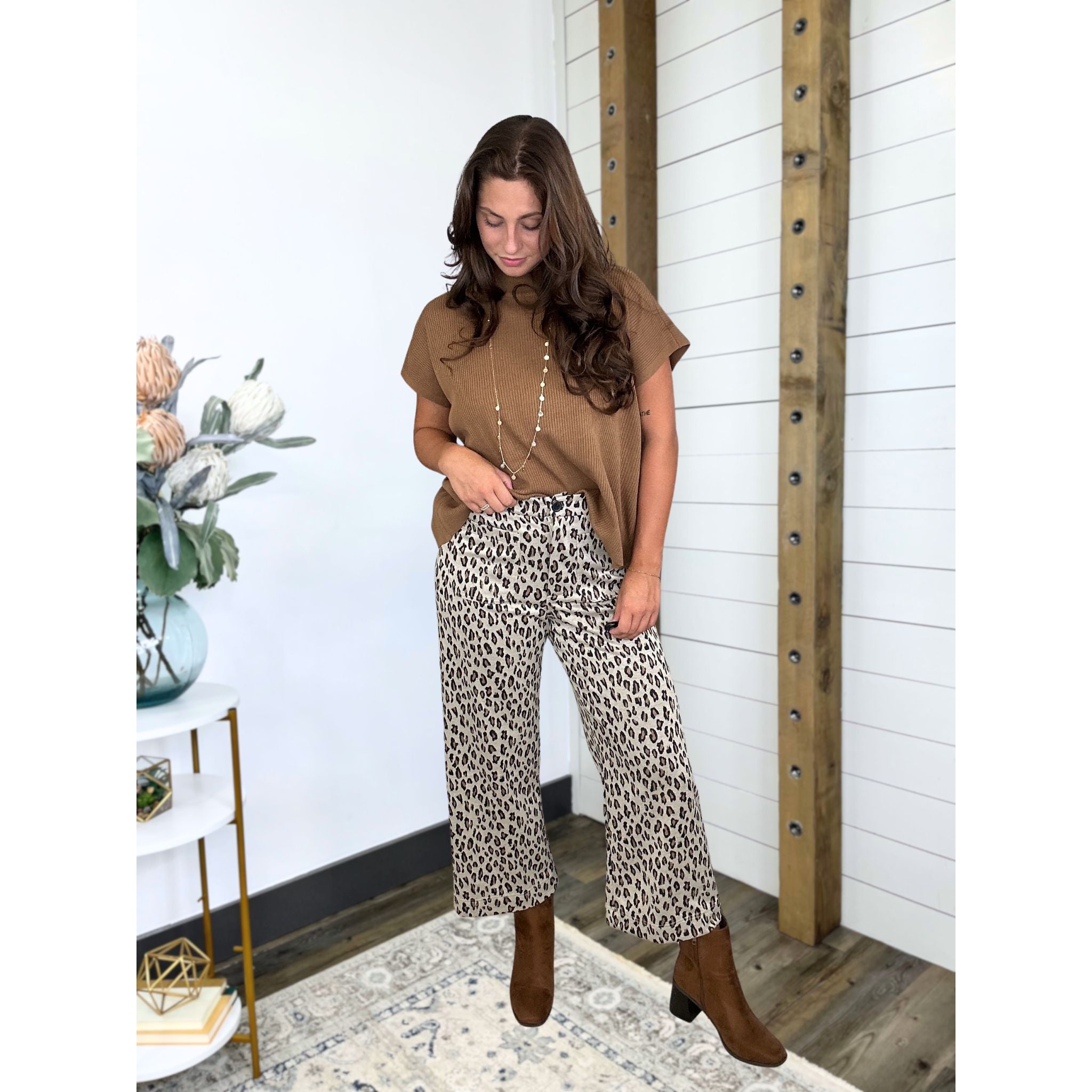 Get ready to turn some heads—our Feeling Fierce Leopard Pants are back and better than ever in a buttery soft knit you’ll live in. The wide-leg fit brings all the drama (in the best way), while the neutral color combo makes styling a breeze. Comfy, bold, and just the right amount of wild—these are the pants you'll reach for when you wanna feel fierce without even trying.