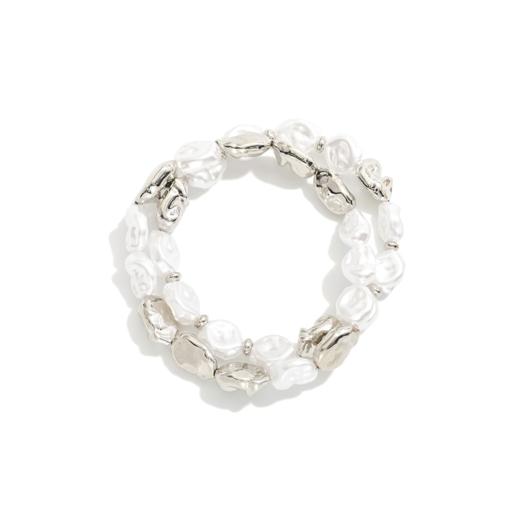 Two Baroque Pearl Beaded Stretch Bracelets Featuring Metal Tones- Approximately 3" D