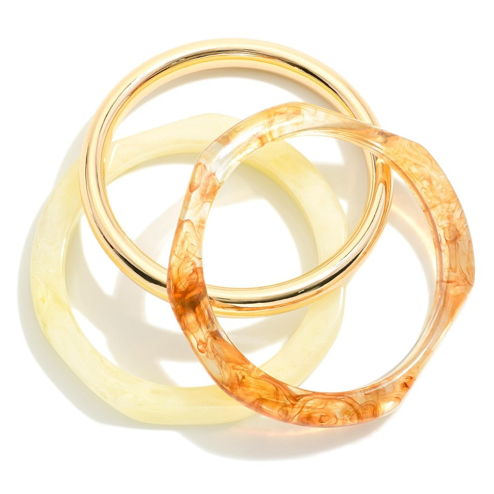 Set Of Three Metal Tone & Acrylic Bangle Bracelets