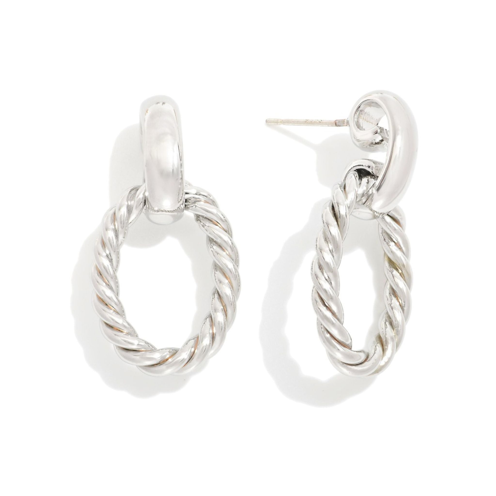 Metal Tone Twisted Oval Door Knocker Drop Earring