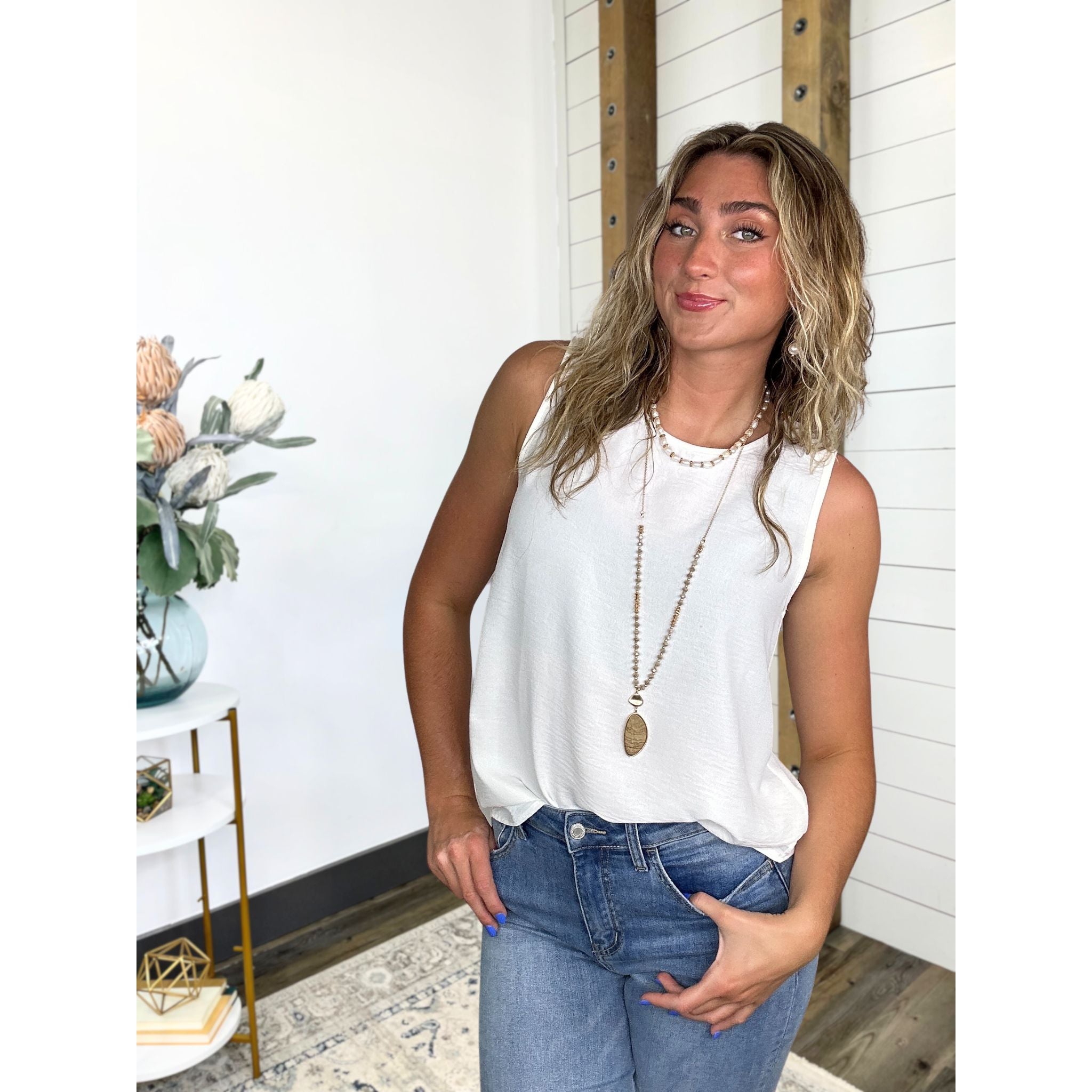 Sleeveless Round Neck  Blouse Featuring a round Hem- Bra friendly