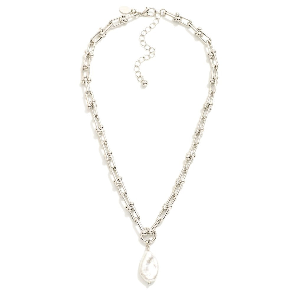 U Link Chain Necklace Featuring Baroque Pearl Pendant