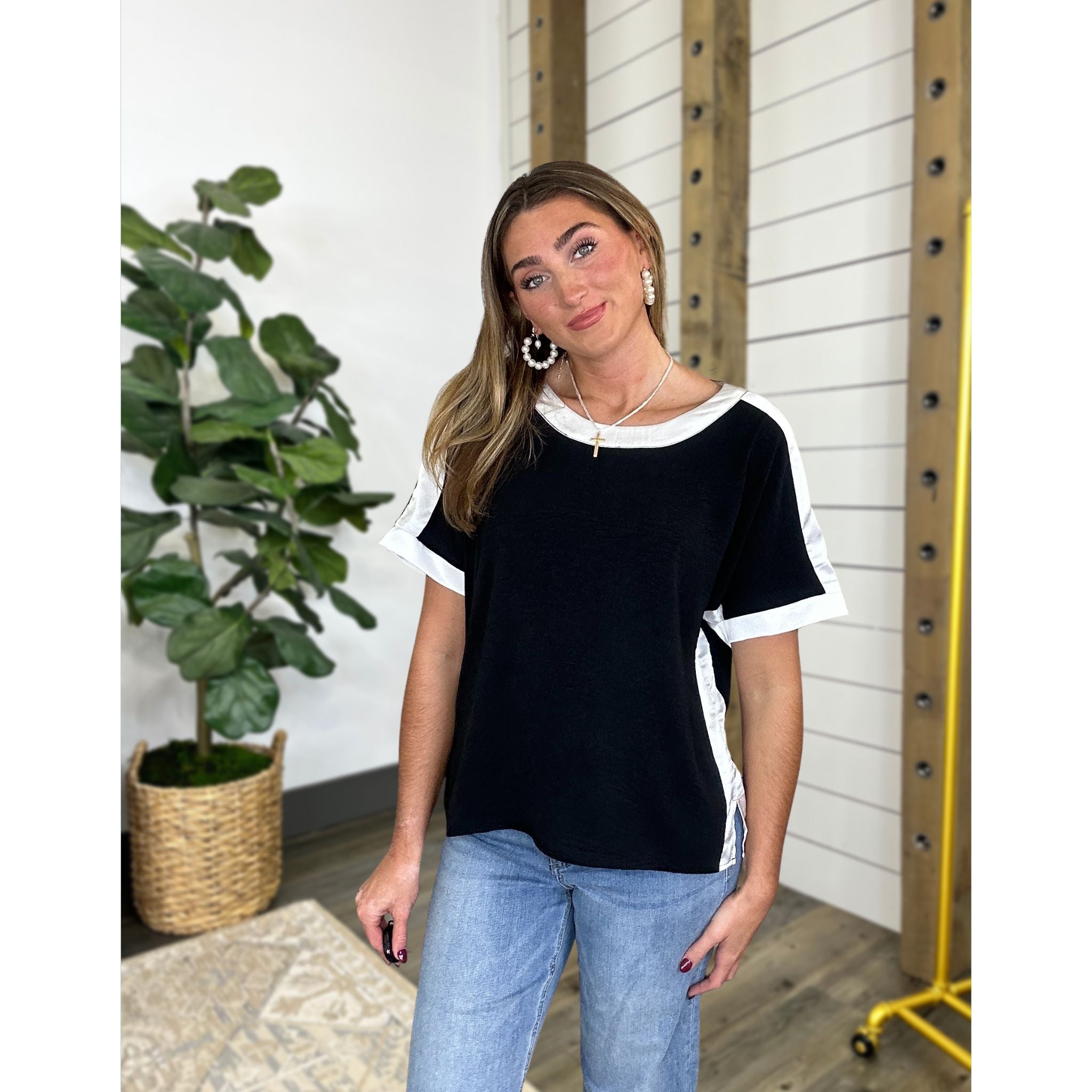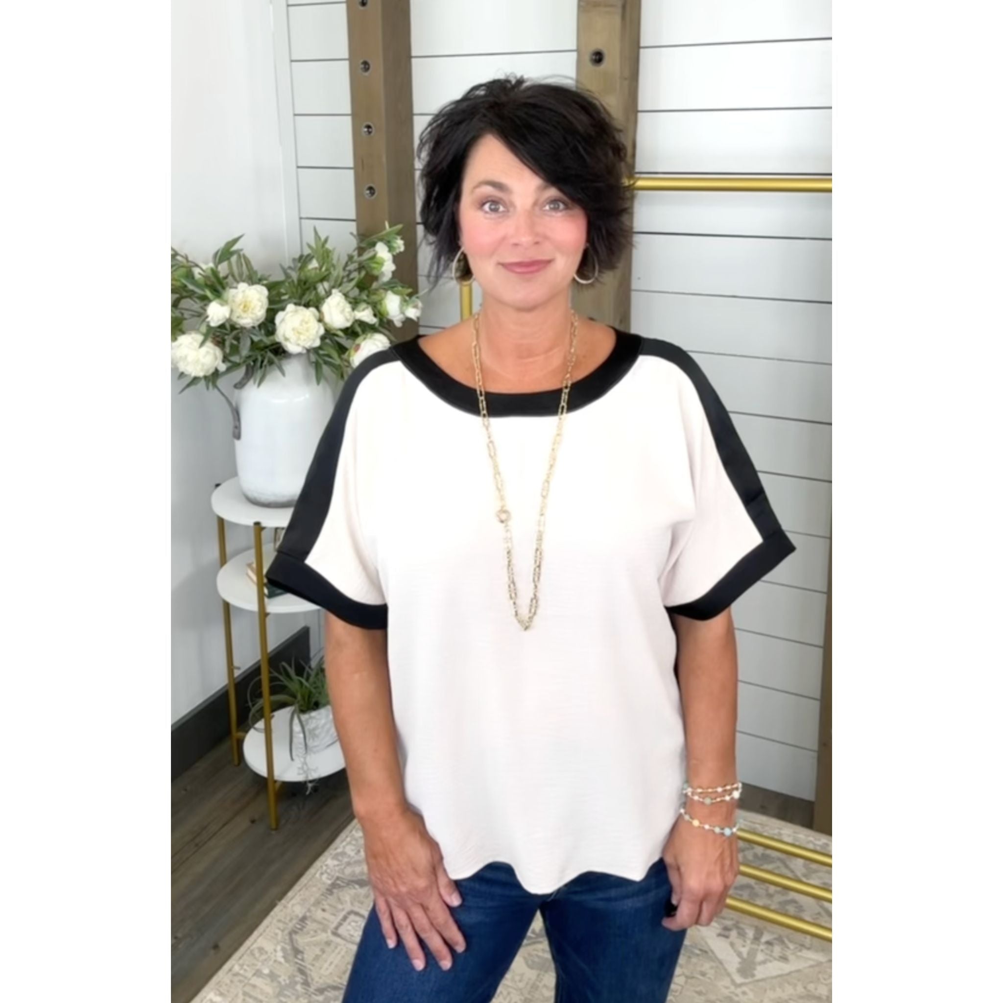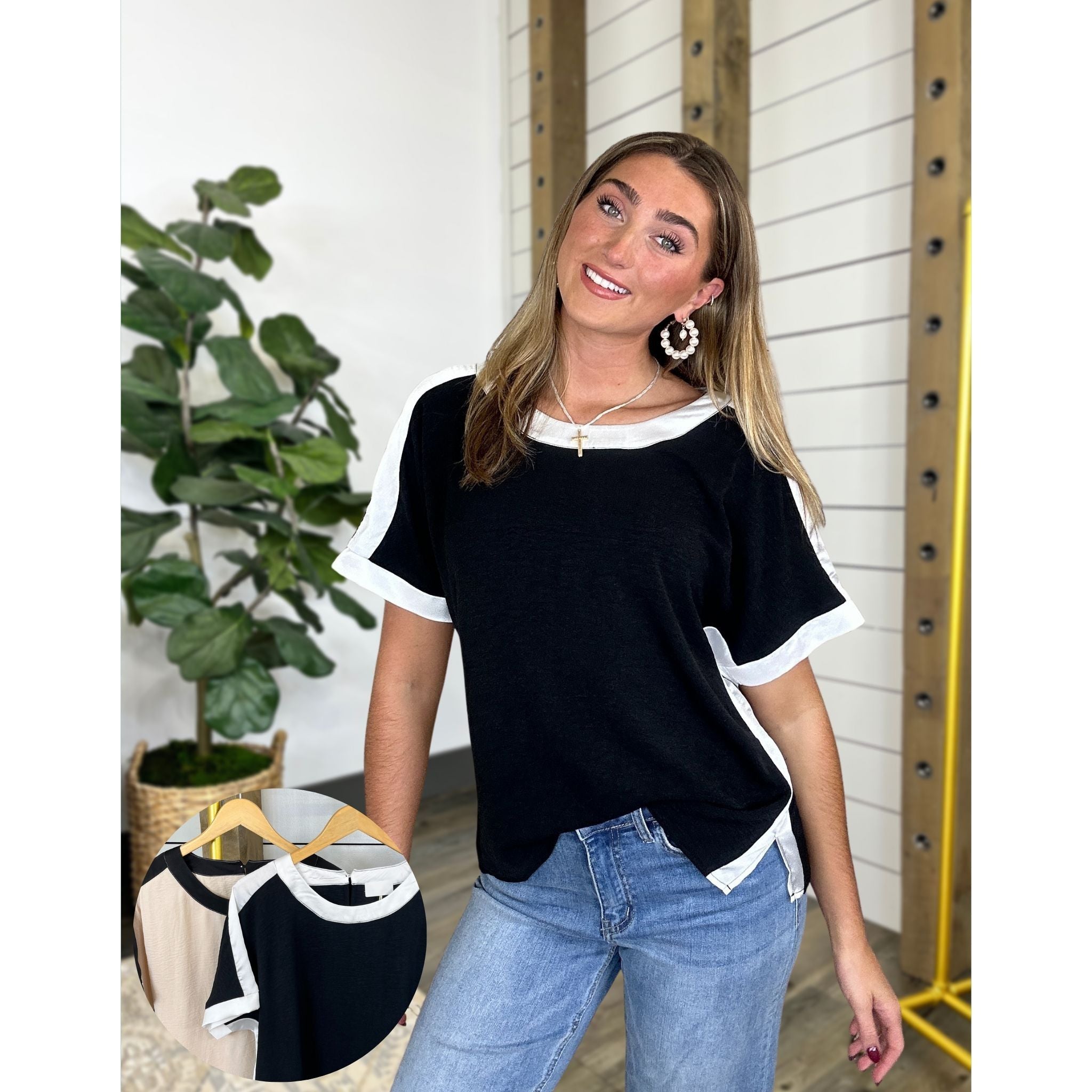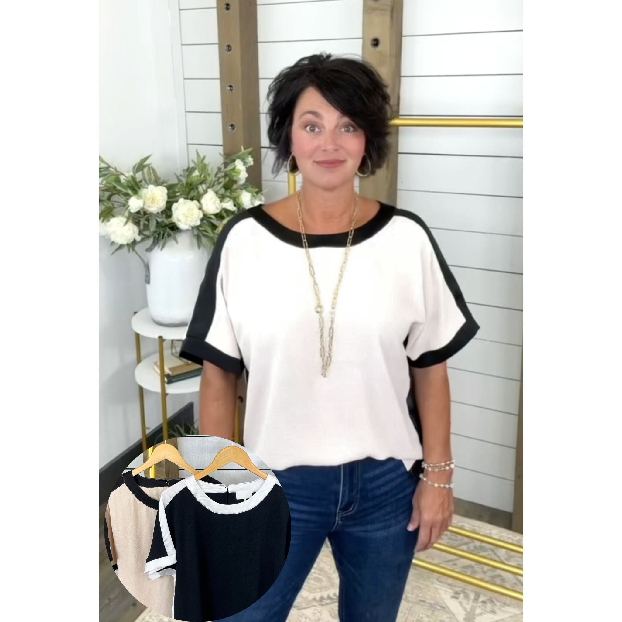 The Mode Moment Top adds just the right pop with its flattering contrast design and elevated feel. A playful twist on a classic silhouette, it’s the kind of piece that makes styling a breeze—effortlessly pairing with everything from denim to tailored trousers. Consider this your new wear-on-repeat favorite.