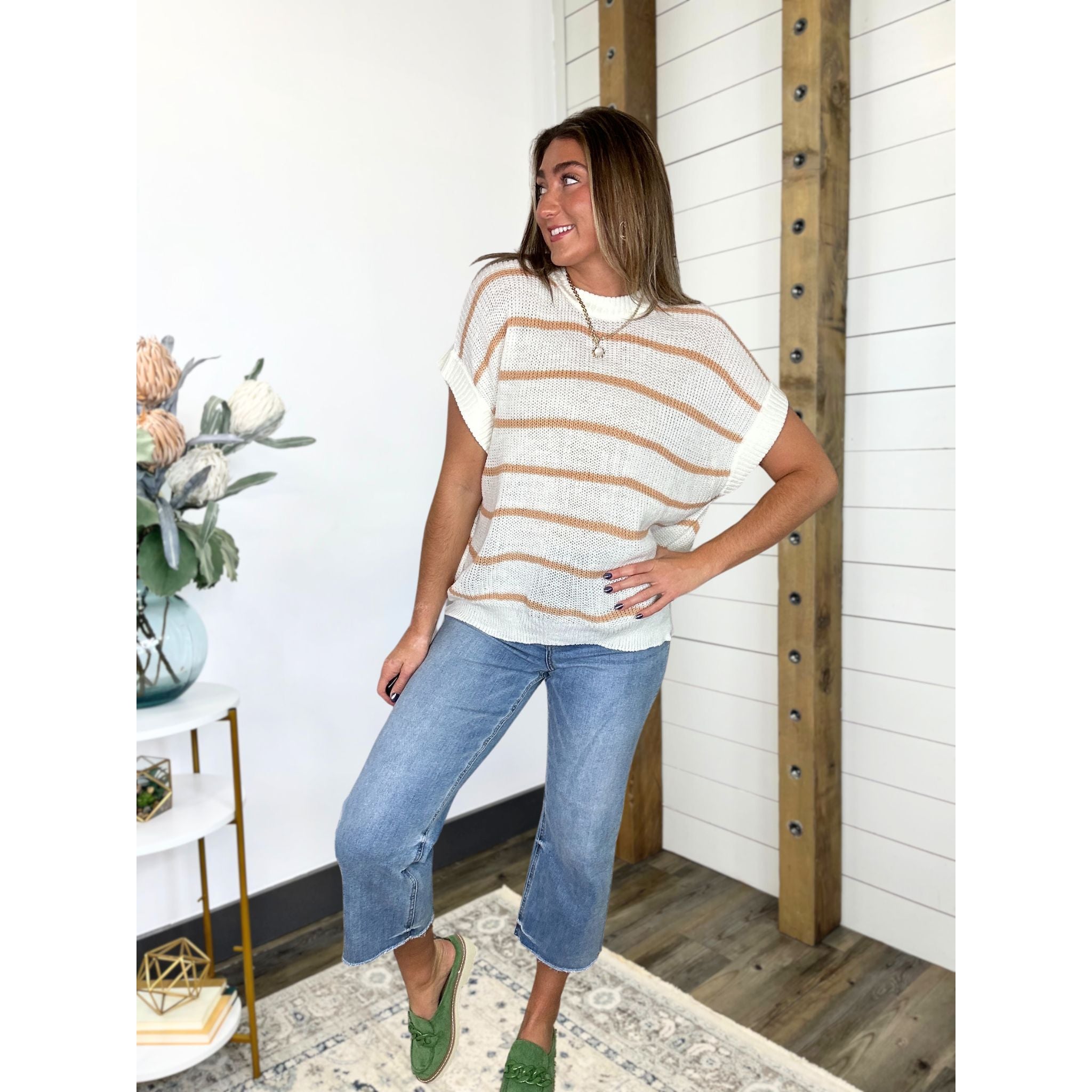 Meet the Lucky You're Here Sweater, your new favorite for style and comfort! This wardrobe wonder is all about that relaxed fit and oh-so-soft knit, making it a dream to wear on its own when the sun's shining bright. But don't worry, it's just as fabulous for those cooler evenings when you need a little extra warmth—simply layer it over a long sleeve top and you're good to go!