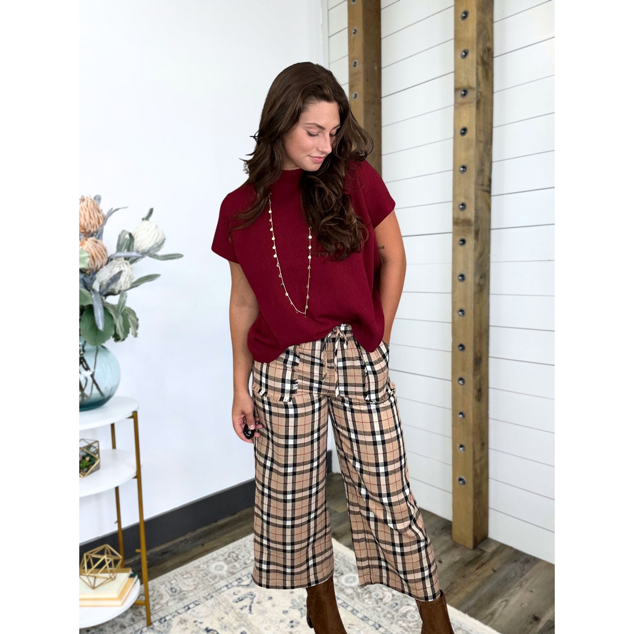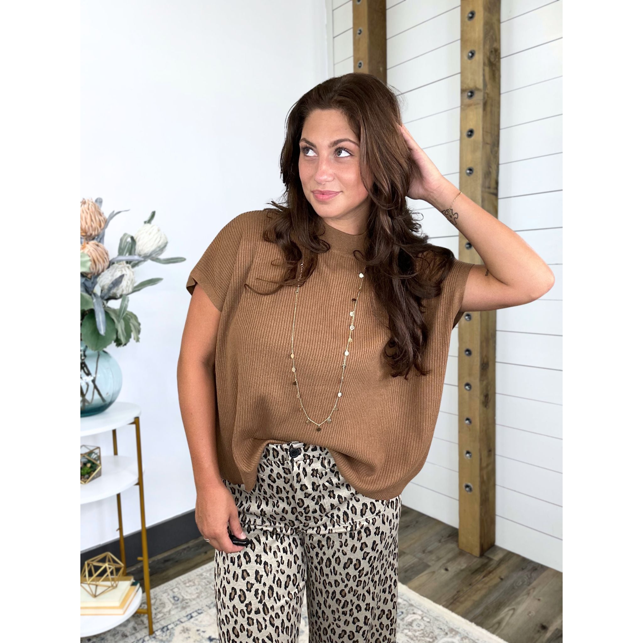 Short Sleeve Mock Neck Ribbed Boxy Sweater